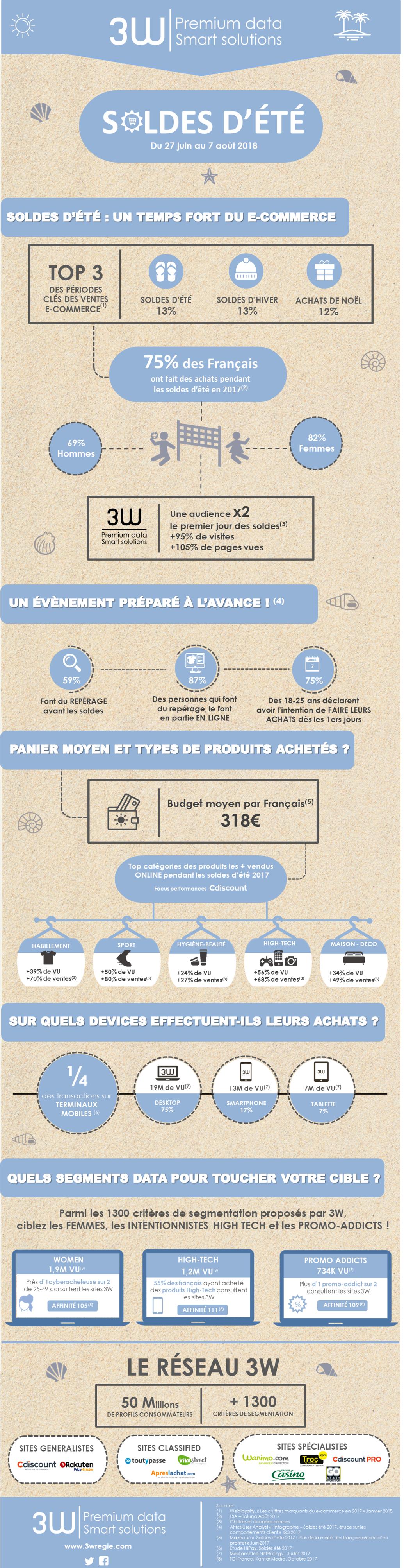 Pour mieux appréhender cette période cruciale de l’année, voici une infographie publiée par 3W l’année dernière à l’occasion des soldes d’été. Elle décortique vos cibles, leurs habitudes et leurs attentes. Piochez-y les informations qui vous permettront de vous surpasser !