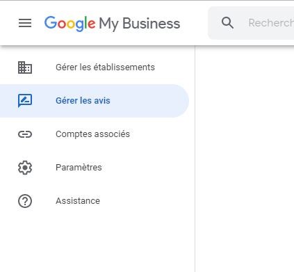 - Si vous avez un seul établissement : dans le menu de gauche, ouvrez la fiche en cliquant sur “Avis”.