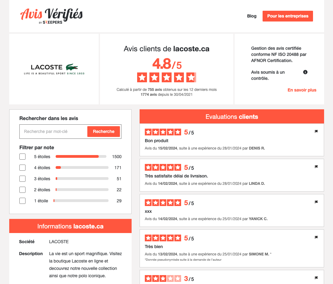 Nous pouvons en témoigner directement : le nombre de marques qui font confiance à notre plateforme Avis Vérifiés est en croissance continue. L’avantage de notre plateforme est qu’elle assure l’authenticité des avis déposés par les clients grâce à un solide processus de certification. Les avis clients obtenus par les marques grâce à notre plateforme sont recueillis uniquement auprès des clients ayant effectivement acheté le produit (sollicitations post-achat), garantie de l’authenticité des avis.