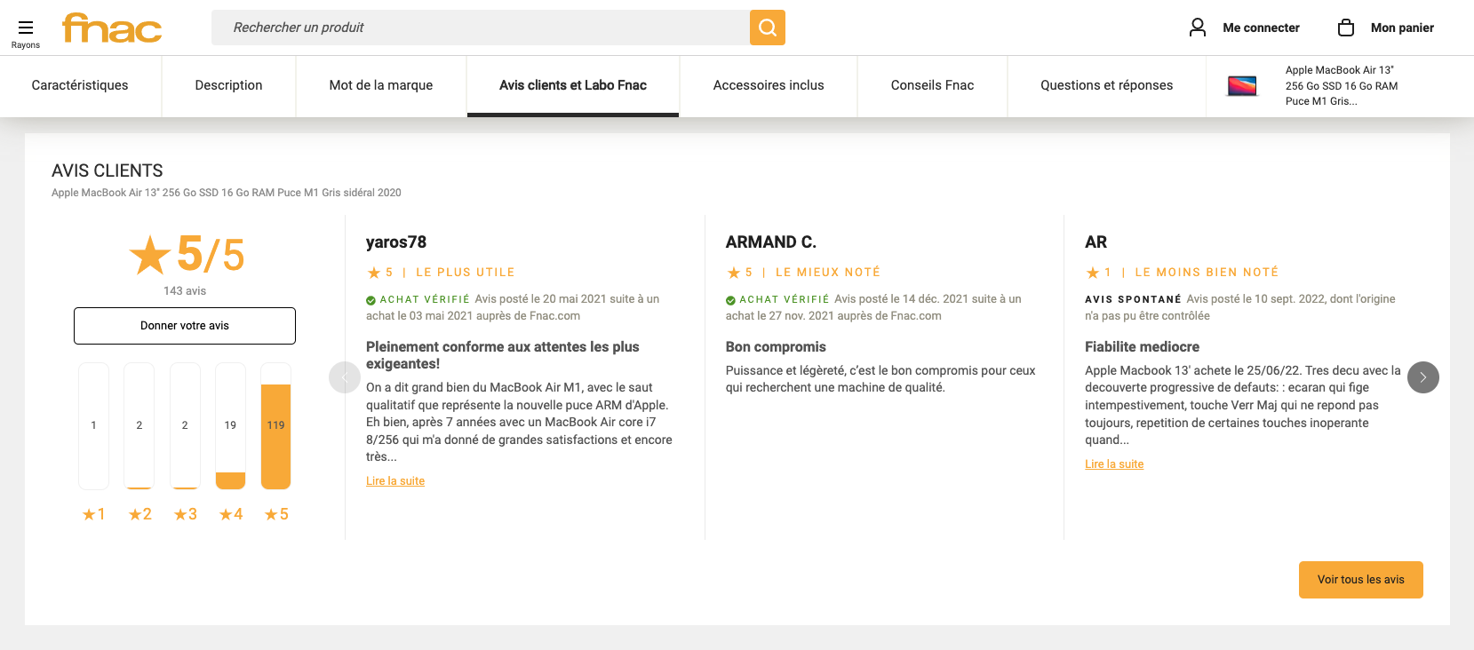 Ces contenus générés par les consommateurs ou UGC peuvent prendre des formes très diverses. La plus connue, ce sont les avis clients déposés sur les sites internet (voir l’exemple de la Fnac) ou ceux publiés sur des plateformes d’avis comme Avis Vérifiés.