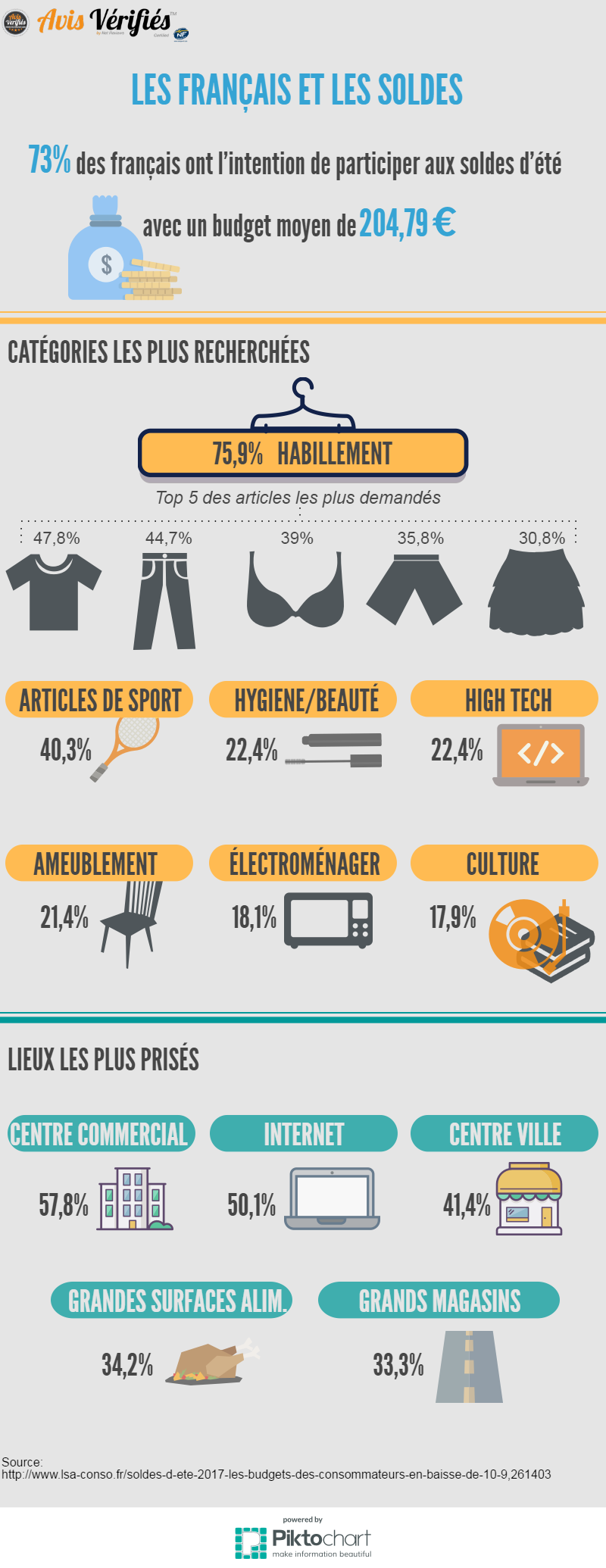 C’est parti pour 6 semaines de soldes ! Bien que les intentions de participer et le budget soient en baisse cette année (respectivement -4,4 et -10,9pts), les soldes d’été restent un événement incontournable pour les français! Découvrez dans cette infographie quelques chiffres clés.