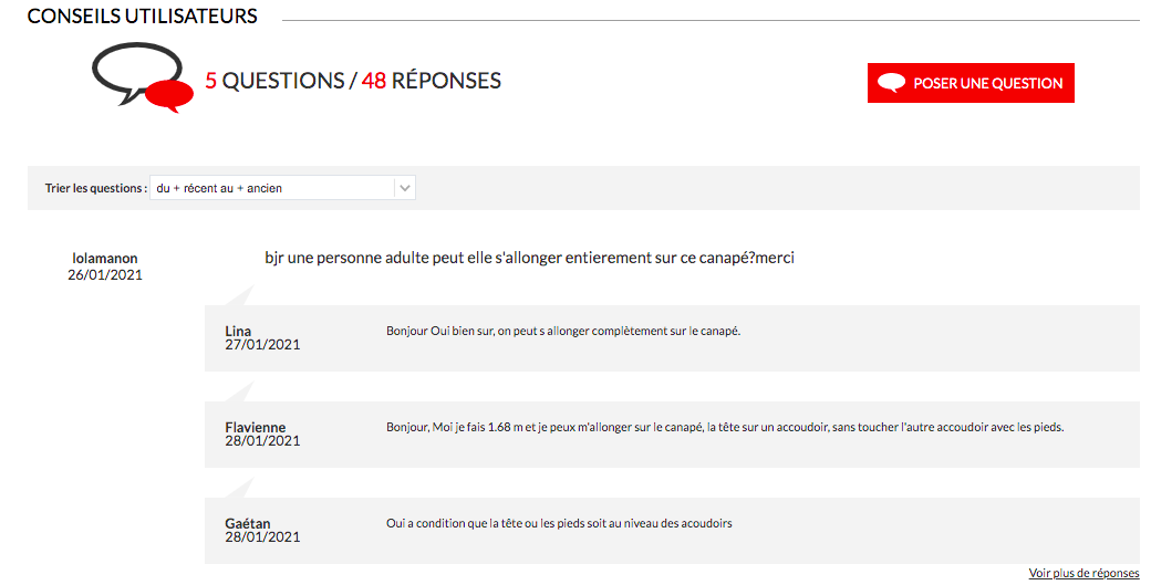 • Communauté : l’outil Q&A est un levier communautaire puissant, puisqu’il génère de l’interaction entre les internautes, les clients et l’entreprise. L’expérience d’achat devient collaborative et s’inspire de l’intelligence collective. La proximité, l’entraide et l’engagement sont au cœur de cet outil.
